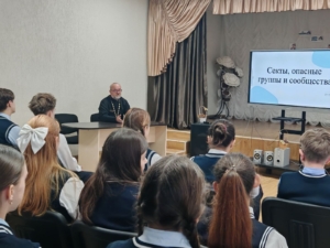 20 октября 2025 года состоялась встреча учащихся 9-11 классов с православным священником. Клирик храма Воскресения Христова иерей Сергий Мигель рассказал ребятам об опасности, которую несут в себе деструктивные сообщества религиозного толка — секты, ответил на интересующие старшеклассников вопросы.