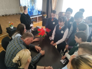 26.04.2025 учащиеся 5-8 классов Новосёлковской средней школы Ошмянского района приняли участие в диалоговой площадке с олимпийским чемпионом А.С.Барбашинским.