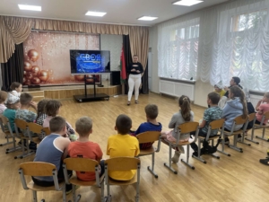 9 день «Новый взгляд» в воспитательно-оздоровительном лагере «Страна Детства» Новосёлковской средней школы Ошмянского района прошел весело и задорно: на минутке безопасности «Безопасное путешествие в природу» ребята вспомнили правила поведения на природе. Во время эрудит-тура «В центре Европы — в центре событий» ребята вспоминали самые важные события, которые прошли в нашей стране. На игре-викторине «Путешествие по Беларуси» (в рамках Года благоустройства) ребята узнали, что проводится у нас в рамках Года благоустройства. Педагог социальный провела свою игру «80 мирных лет». На спортландии «Сильные. Ловкие. Смелые» в рамках республиканской акции «Лето — детям» по направлению «Спортивная эстафета лета, или Быть здоровым — это стильно» ребята показали свои умения в ловкости и быстроте, продемонстрировали умение работать в команде. Библиотекарь школы на мульти-уроке «детские газеты и журналы» познакомила детей с изданиями для юных читателей.