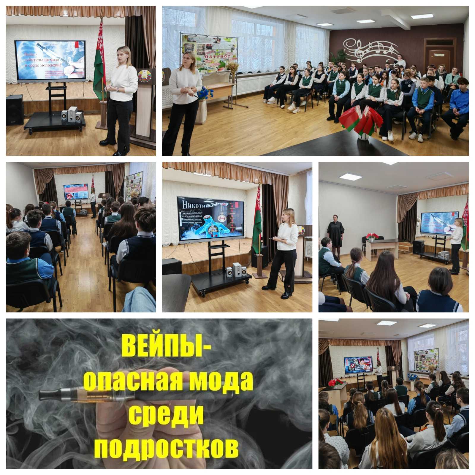 27 февраля учащиеся 7-11 классов Новосёлковской средней школы Ошмянского района приняли участие в профилактическом мероприятии «Вейп — губительная мода в среде молодёжи», направленном на борьбу с употреблением курительных смесей. Перед ребятами с разъяснениями выступила и ответила на интересующие их вопросы помощник врача Новосёлковской амбулатории Пеньковская Елена Станиславовна.